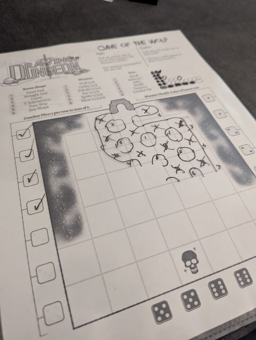 I had a great time playing Drawing Dungeon. It’s the right amount of challenge for me, where I feel that I can see myself improving from one run to another. The different maps provide a nice change of pace and introduce some interesting twists. A perfect game for Saturday morning while drinking coffee and taking a slow morning. I’d recommend printing multiple copies, as I always want to retry a dungeon if I fail it!